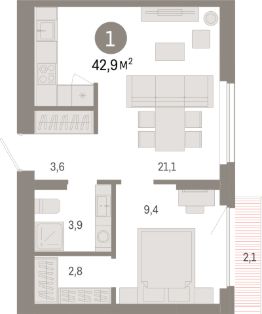 Продаётся 1-комнатная квартира в строящемся доме (Дом 1), срок сдачи: II-кв. 2028, общей площадью 42.9 кв.м., на 5 этаже. ''Квартал Лебедевского'' - новый проект компании ''Брусника'' в Заельцовском районе Новосибирска на ул. Георгия Колонды.