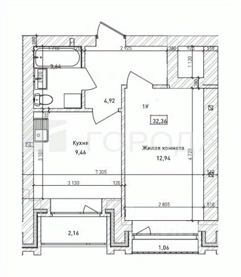 32 м² · Этаж 12 из 25