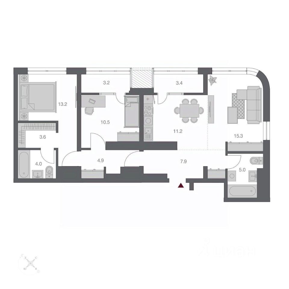 57 м² · Этаж 8 из 16