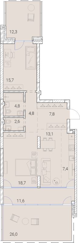 Трехкомнатная квартира от застройщика с предчистовой отделкой в Квартал Мылзавод на 28 этаже. Общая площадь: 158.58 кв.м., жилая: 45.6 кв.м., площадь просторной кухни-гостиной: 35.9 кв.м. Квартира угловая, очень светлая, естественная вентиляция при открытии окон. В квартире один балкон, два совмещенных санузла. Терраса представляет собой роскошную зону отдыха, где вы на свой вкус можете создать атмосферу комфорта и уюта. Высота потолков 2.72 м. Квартира находится в корпусе 8. Дом монолитный, одноподъездный, высотой 30 этажей. На этаже 9 квартир. В подъезде 1 пассажирский и 2 грузовых лифта. Окончание строительства - 4 квартал 2026 года. Оформление сделки по договору долевого участия. Квартира с кухней-гостиной и тремя спальнями в квартале ''Мылзавод''. Особенности планировки: вид во двор, гардеробная, мастер-спальня, предчистовая отделка, терраса на крыше. квартиры в нашей базе: МЛ-ГП4.1-8-8.28.6. Квартал ''Мылзавод'' расположен в границах улиц Некрасова, Каменская, Писарева и Семьи Шамшиных. Во времена НЭПа на этом месте появилось промышленное предприятие, выпускавшее более тридцати видов мыла. Его продукция славилась высоким качеством и шла на экспорт. Восемь лет назад городские власти решили перенести все заводы из центральной части Новосибирска и отдали этот участок под жилую застройку. Ревитализация промышленных территорий — обычная для европейских городов практика. Она дает возможность насытить старые, неиспользуемые территории новыми востребованными функциями и таким образом ''вернуть'' городу утраченные пространства. Сегодня вокруг квартала уже сформирована транспортная и социальная инфраструктура. Жители ''Мылзавода'' смогут быстро добраться до главных достопримечательностей города — театра оперы и балета, ''Глобуса'' и краеведческого музея. В шаговой доступности расположены автобусные остановки, две станции метро, четыре школы, а также один из самых больших торговых центров города — ''Галерея''. Квартал состоит из двух 9-этажных урбан-вилл, четырех 17-этажных и трех 30-этажных башен, объединенных стилобатом. В основу концепции ''Мылзавода'', которую Брусника разрабатывала совместно с голландскими и немецкими архитекторами, лег принцип mixed-use . Он предполагает совмещение в пределах одной локации жилого, рабочего, коммерческого и культурно-развлекательного пространств. На первых этажах домов разместятся продуктовые магазины, кафе, офисы, а также частный детский сад на 100 мест. Если Вы - риелтор, пожалуйста, за более подробной информацией обратитесь на горячую линию на нашем официальном сайте. #ZswZeS