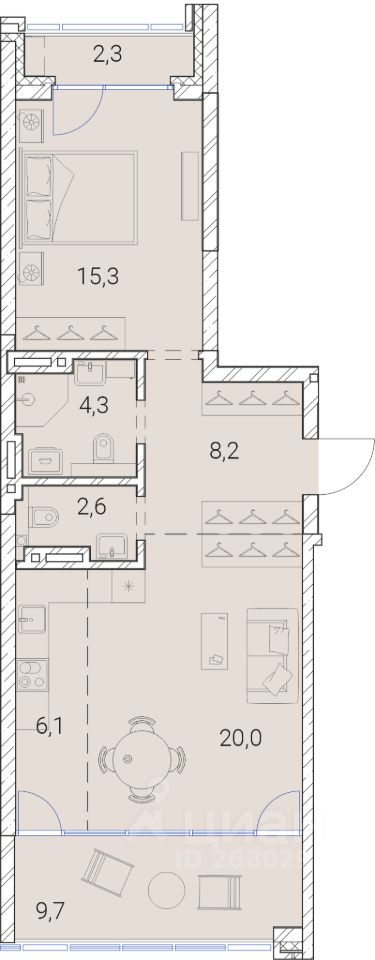 68 м² · Этаж 19 из 25
