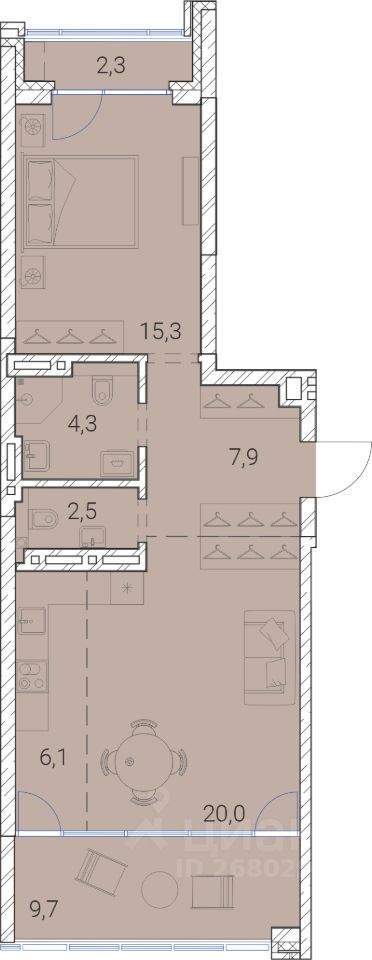 68 м² · Этаж 18 из 25