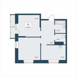 Продаётся 2-комнатная квартира в строящемся доме (Дом 1), срок сдачи: II-кв. 2026, общей площадью 59.63 кв.м., на 25 этаже. Новый жилой комплекс ''Расцветай на Дуси Ковальчук'' от Группы компаний ''Расцветай'' расположен в Заельцовском районе Новосибирска на ул. Дуси Ковальчук.