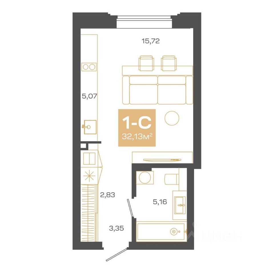 34 м² · Этаж 15 из 24