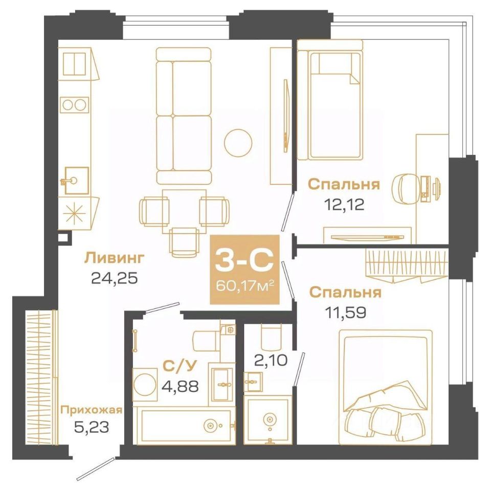 60 м² · Этаж 7 из 24