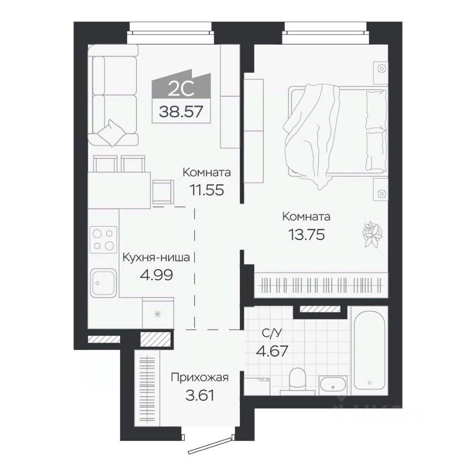 55 м² · Этаж 2 из 24