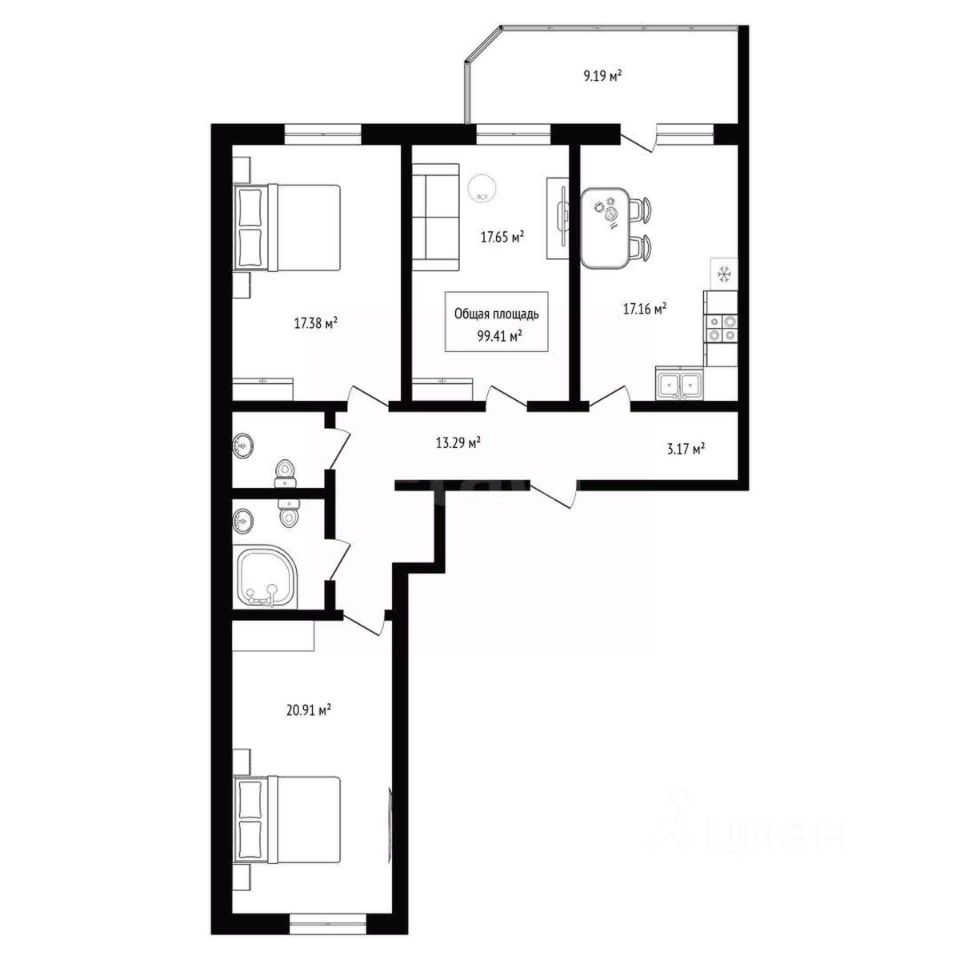99 м² · Этаж 17 из 19