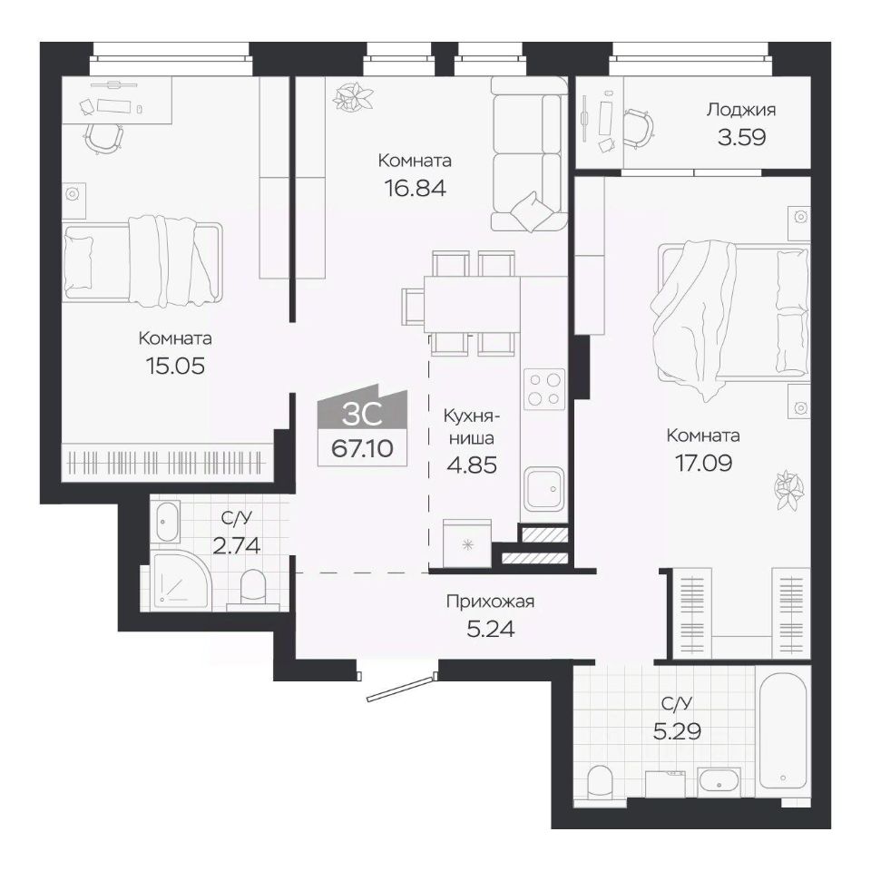 67 м² · Этаж 6 из 8