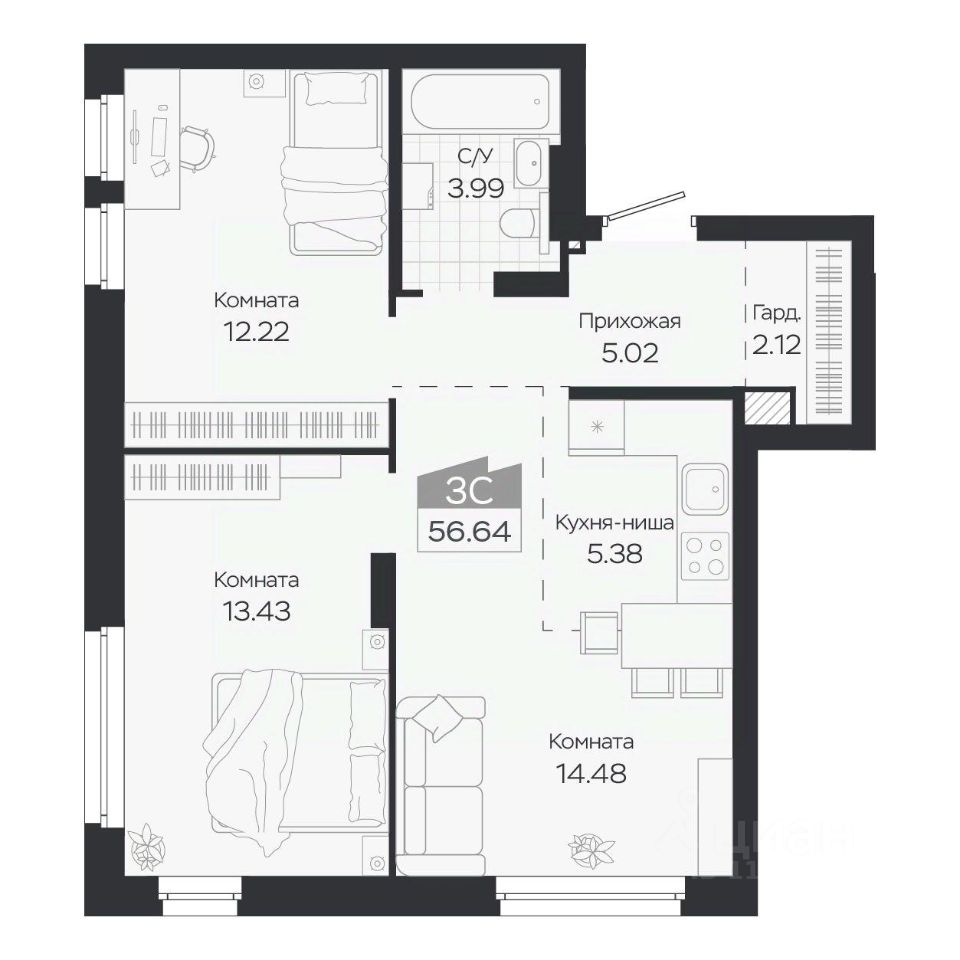 56 м² · Этаж 5 из 8