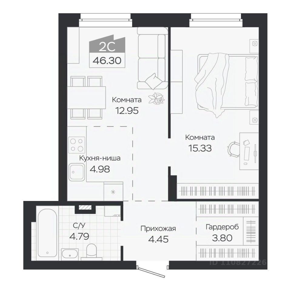 46 м² · Этаж 2 из 8