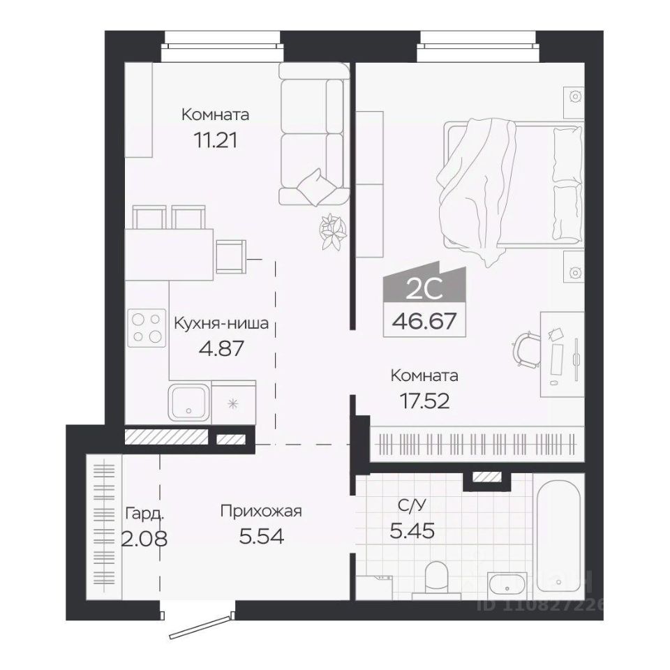 Продаётся 2-комнатная квартира в строящемся доме (Дом 3), срок сдачи: IV-кв. 2027, общей площадью 46.67 кв.м., на 2 этаже. Новый жилой комплекс ''Базилик'' от застройщика ''Группа Мета'' расположен в рп. Краснообск Новосибирской области на ул. Восточная. Локация с прекрасной экологией и инфраструктурой. Дендропарк за окном и озеленение внутренних территорий разными видами растений позволит любоваться красками природы в любое время года.