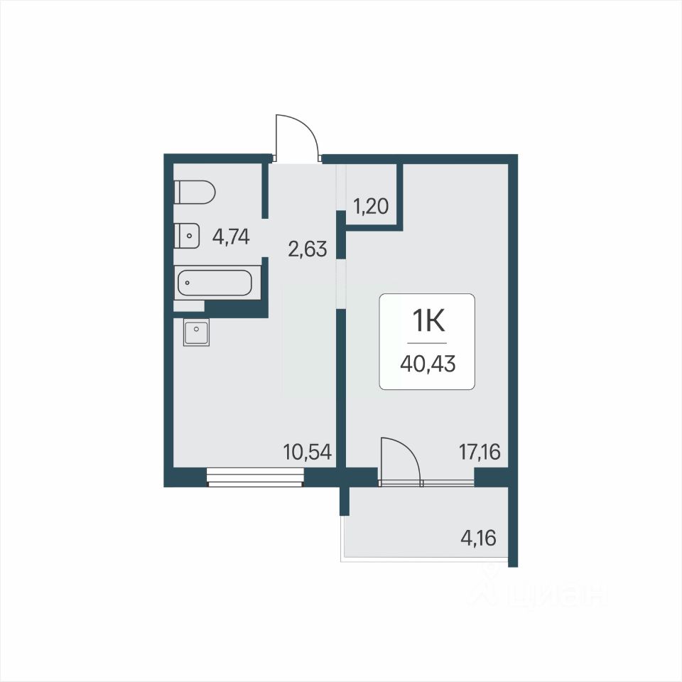 26 м² · Этаж 4 из 17