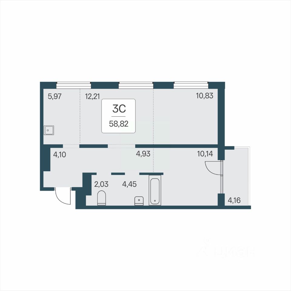 58 м² · Этаж 6 из 17