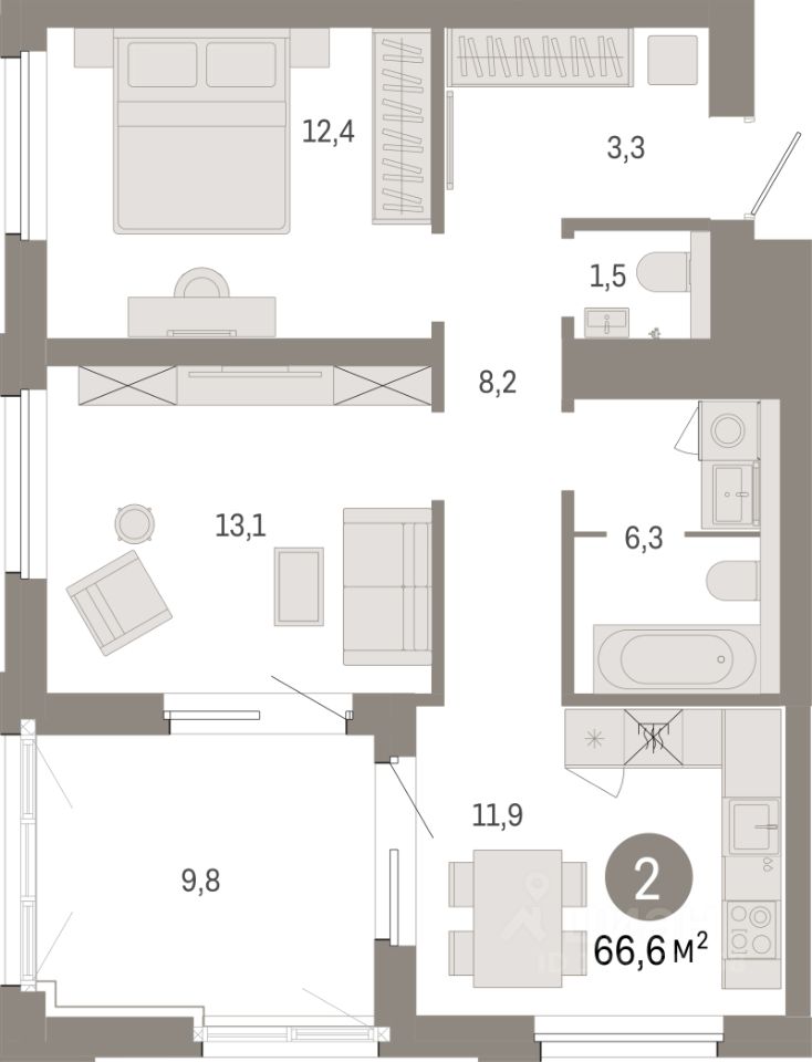66 м² · Этаж 12 из 24