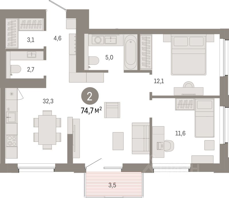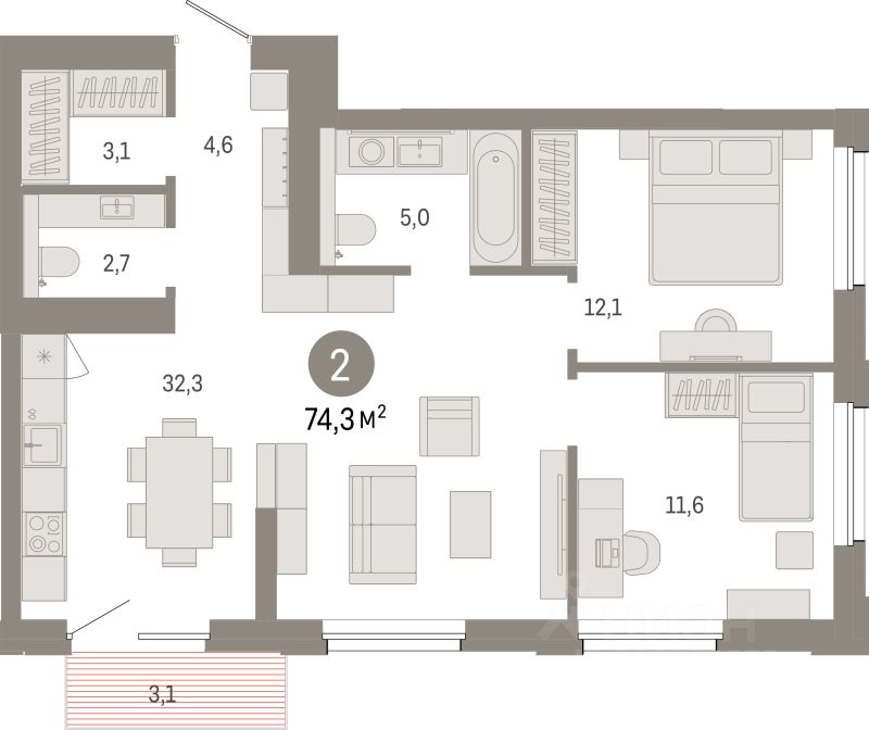 74 м² · Этаж 5 из 24