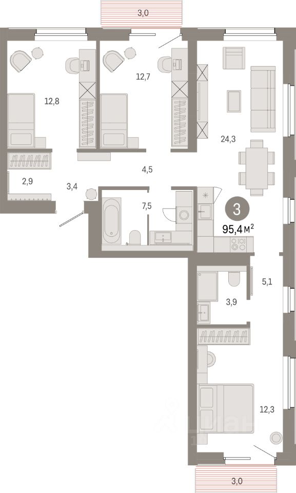 95 м² · Этаж 9 из 24