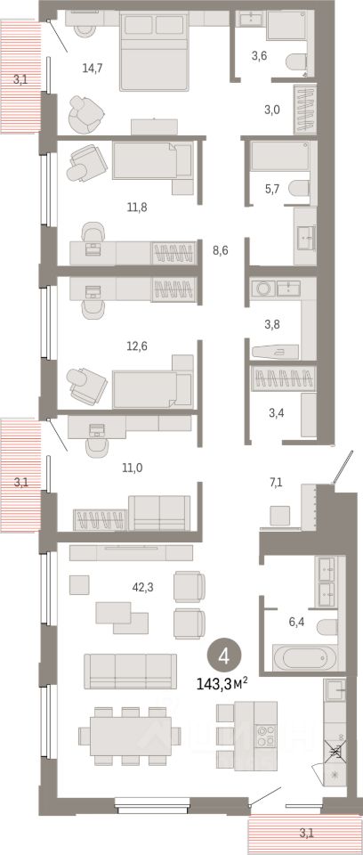 143 м² · Этаж 5 из 24