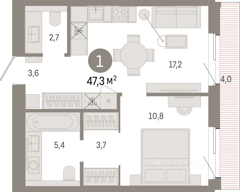 47 м² · Этаж 3 из 24