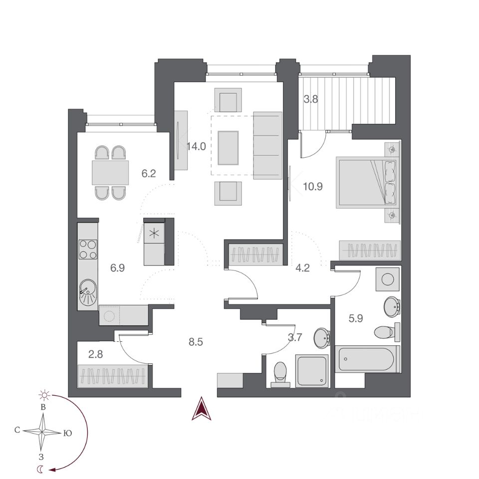 56 м² · Этаж 9 из 30