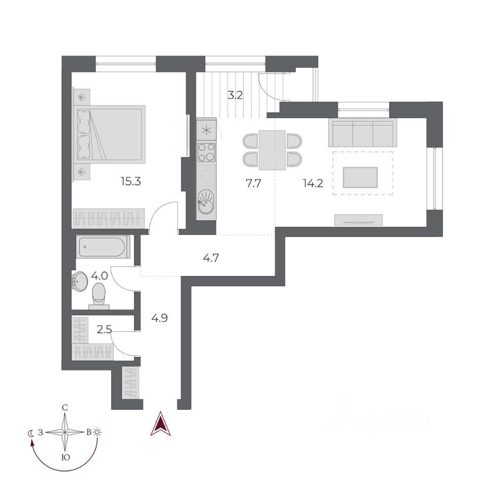 39 м² · Этаж 15 из 24