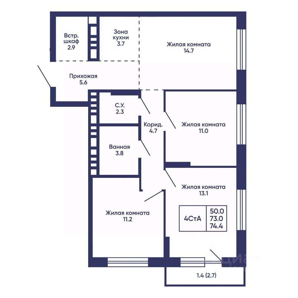 74 м² · Этаж 4 из 24