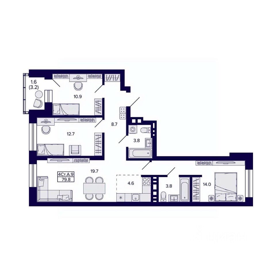 79 м² · Этаж 9 из 20