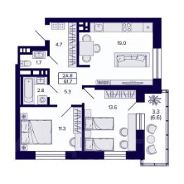 Квартиру можно купить по семейной ипотеке. Звоните, мы вам все подробно расскажем! Продается 2-комн. квартира с европланировкой и предчистовой отделкой в ЖК ''Астон. Шесть Звезд'' на 17 этаже. Общая площадь: 46.26 кв.м., жилая: 24.96 кв.м., общая площадь гостиной-столовой с кухонной зоной: 18.0 кв.м. Европланировка, кухня и гостиная объединены в одно просторное помещение. Комнаты изолированные, все окна выходят на одну сторону. В квартире одна лоджия, один совмещенный санузел. Высота потолков 2.65 м. Квартира находится в корпусе 2А. Дом монолитный, одноподъездный, высотой 26 этажей. На этаже 16 квартир. В подъезде 5 грузовых лифтов. Окончание строительства - 4 квартал 2026 года. Оформление сделки по договору долевого участия. ''Астон.Шесть звезд'' - современный комплекс из 26-этажных домов класса ''комфорт плюс'' с уютными квартирами, вдохновляющими видами на левобережье, продуманной организацией жилого пространства, стильным дизайном общественных интерьеров и авторским благоустройством. Природа рядом, для этого ненужно ехать далеко загород. В районе жилого комплекса расположен парк Бугринская роща, в котором есть масса развлечений для вас и вашей семьи:- парк аттракционов- кемпинг ''Бугринская гавань'' с зонами барбекю- зимний каток и зона для катания на снегоходах- лыжная база ''Сибирь''- летом благоустроенный пляж В 10 минутах ходьбы находится большой футбольный стадион, также поблизости есть конный клуб ''Мустанг''. В пределах 15 минут езды на общественном транспорте расположены учебные заведения - Новосибирский Государственный Технический Университет, Сибирский университет потребительской кооперации и колледжи. Фасады жилого комплекса - воплощение современного стиля. Такой эффект дает сочетание строгих линий, благородных оттенков натуральных материалов и блеска вертикального витражного остекления. Авторский дизайн холлов сочетает натуральные оттенки и фактуры дерева, керамогранита, декоративной штукатурки. Обилие света и воздуха создает сочетание стеклянных и зеркальных элементов со стильной трековой подсветкой, дополненной акцентнвми бра. Мягкие зоны в таком антураже особенно уютны и удобны для коротких встреч или ожидания курьера. Квартира будет просторнее, если оставить коляску, велосипед или игровой инвентарь в колясочной с удобными полками. Хранить не сезонные вещи можно в личной кладовой. Благоустроенный закрытый двор спроектирован с учетом безопасности и многофункциональности пространства - здесь можно поиграть с детьми, заняться спортом или просто отдохнуть в парковой зоне. Центром притяжения в ''Астон.Шесть звезд'' станет современный и функциональный комьюнити-центр. Это не просто модное слово, а забота о комфорте и хорошем настроении жителей комплекса. Здесь можно спокойно поработать утро, встретиться с соседями за чашкой чая или провести небольшое мероприятие. #z65ebE