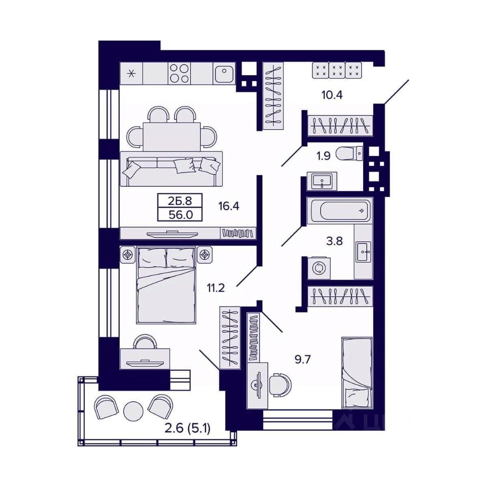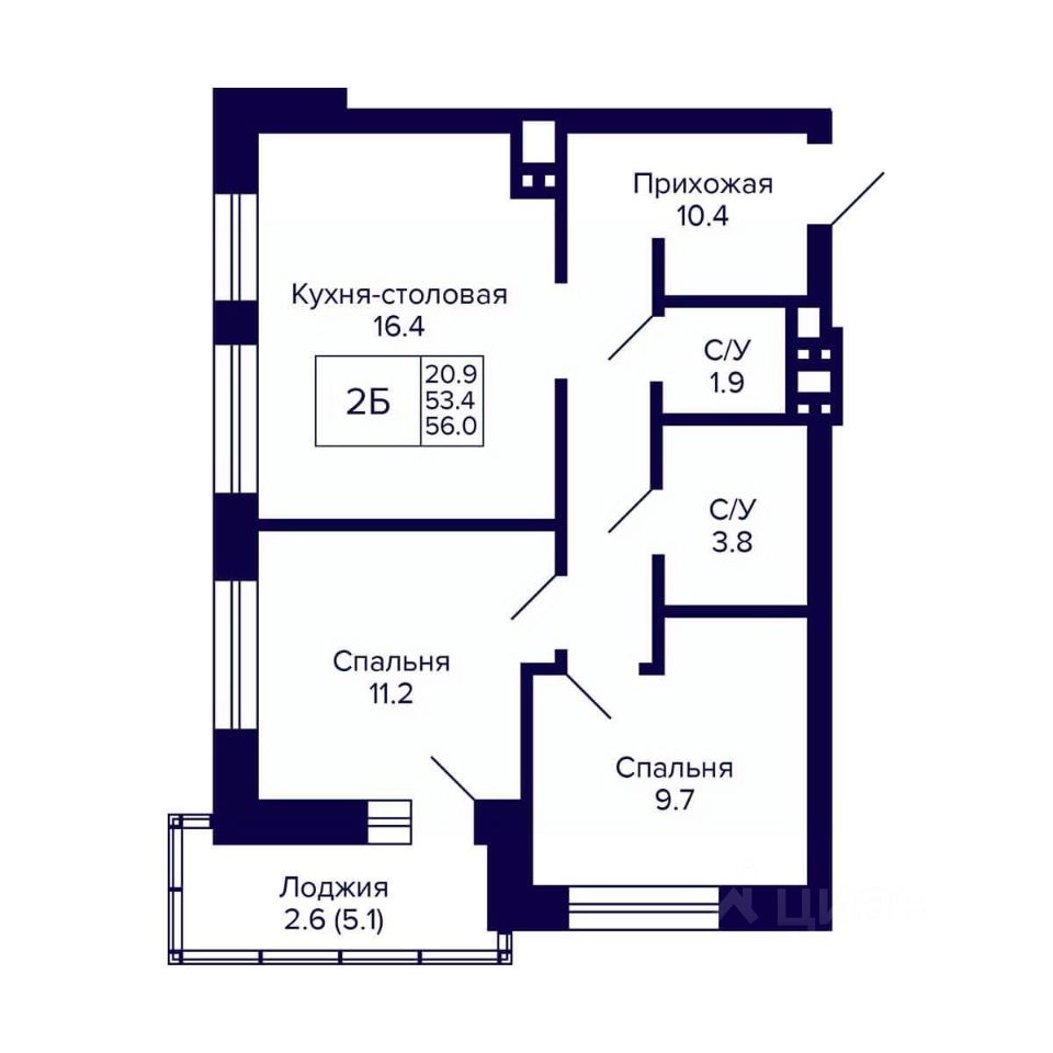 56 м² · Этаж 11 из 20