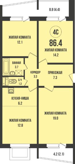 Идеальное зонирование для комфортной жизни семьи Кухня-гостиная с выходом на лоджию — место для общения, отдыха и вечеров в кругу семьи Просторная прихожая дарит ощущение лёгкости и организованности. Продуманные зоны для хранения вещей позволяют поддерживать порядок без усилий Окна на две стороны обеспечат солнечный свет в течение всего дня Мастер-спальня с собственной зоной гардероба и ванной — уединённая зона комфорта. В комнате предусмотрено место под систему хранения и личный санузел с возможностью установки душевой кабины — комбинация, создающая атмосферу уюта и свободы Вторая спальня - с местом для хранения и ТВ-зоной Детская комната с удобными местами для хранения. Здесь достаточно пространство для сна, учёбы и игр Основной санузел с ванной и местом под стиральную машину идеально подойдёт для всей семьи