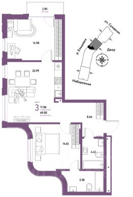 3-к, 2-я Сухарная, 109/2 Показать на карте