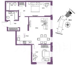 Новая квартира в ЖК ''Страна.Береговая'' напрямую от федерального застройщика ''Страна Девелопмент''. Продается 3комнатная квартира на 2 этаже от застройщика Страна Девелопмент. Площадь квартиры 55,07 кв. м. Жилой комплекс ''Страна.Береговая'' — новый флагманский проект федерального застройщика ''Страна Девелопмент'' в Новосибирске. Дом на берегу Оби с захватывающими видами из окон. Три секции разной этажности с акцентной башней-доминантой образуют камерное пространство с закрытым двором и личным зелёным садом для отдыха. ПРЕИМУЩЕСТВА Свой приватный двор, окружённый зеленью, которая будет цвести весь год. Двор с релакс-пространством, спортивной зоной с воркаут и настольным теннисом. Детская площадка из природных материалов. Двор круглосуточно находится под видеонаблюдением. Парадные с зелёным оазисом из растений. Для комфорта мы предусмотрели тёплые тамбуры, в зонах ожидания разместили мягкие диваны. Также мы добавили возможность бесключевого доступа — по распознаванию лица или считыванию BLE-ключа. Спроектирована подземная парковка на 217 машиномест. Ваш личный транспорт всегда будет под защитой и видеонаблюдением — переживать о его сохранности не придётся. Въезд в паркинг осуществляется с помощью умной камеры по госномеру либо BLE-метке. А чтобы подняться к квартире, не нужно выходить на улицу — лифты отвезут на нужный этаж. Для гостей за территорией двора предусмотрена открытая гостевая парковка. ОТДЕЛКА Квартиры сдаются с предчистовой отделкой: произведена разводка электричества и отопления, выполнена стяжка пола, стены выровнены ''под маяк'', установлены розетки, выключатели и радиаторы. ДИЗАЙНЕРСКАЯ ОТДЕЛКА При покупке квартиры в ЖК ''Страна.Береговая'' можно включить стоимость ремонта в ипотеку. Пять вариантов на выбор: хлопковая нить, серый шторм, белый камень, шалфей, голубой вереск. Включено всё — обои, ламинат, натяжной потолок и даже кондиционер. Также для вас есть четыре варианта ремонта в ванной — акриловая ванна с экраном, смеситель с лейкой, подвесной унитаз, зеркало с подсветкой. Останется только разместить мебель! СПОСОБЫ ПОКУПКИ Сотрудники ''Страна Девелопмент'' будут сопровождать вас на каждом этапе сделки, помогут получить одобрение по ипотеке или снизить ежемесячный платеж. - ипотека - рассрочка - с использованием материнского капитала - 100% оплата наличными
