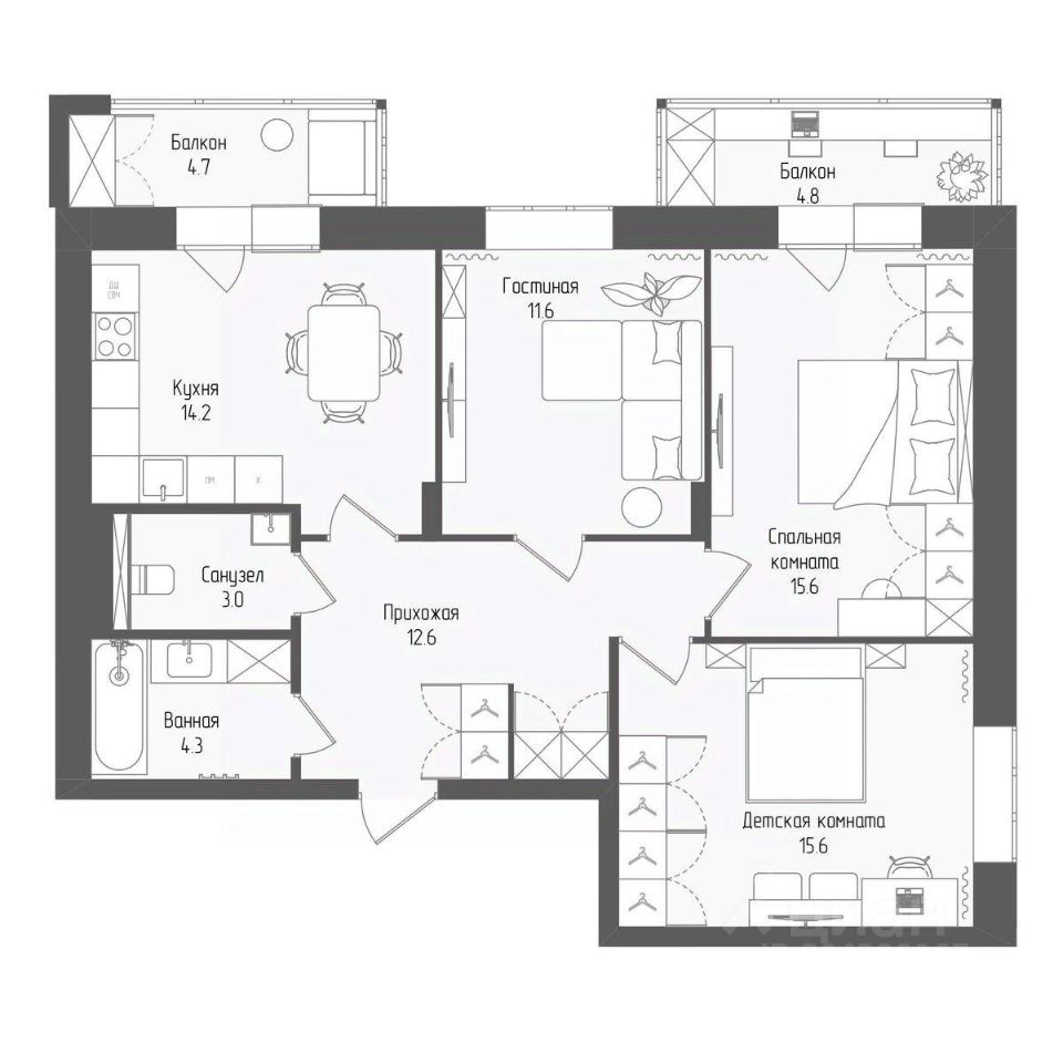 69 м² · Этаж 9 из 15