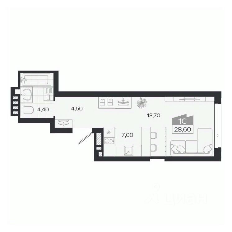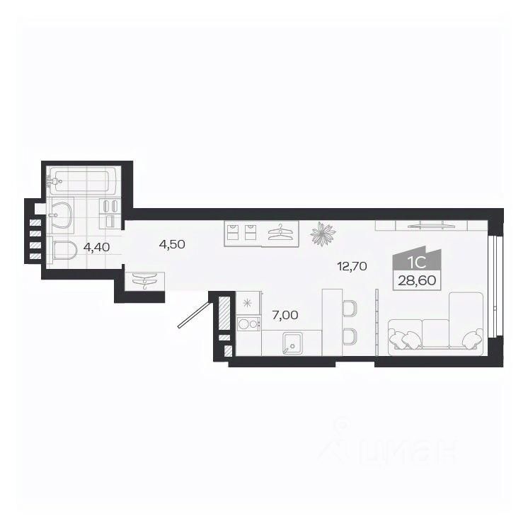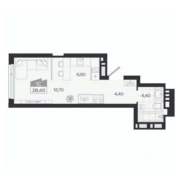 28 м² · Этаж 12 из 27