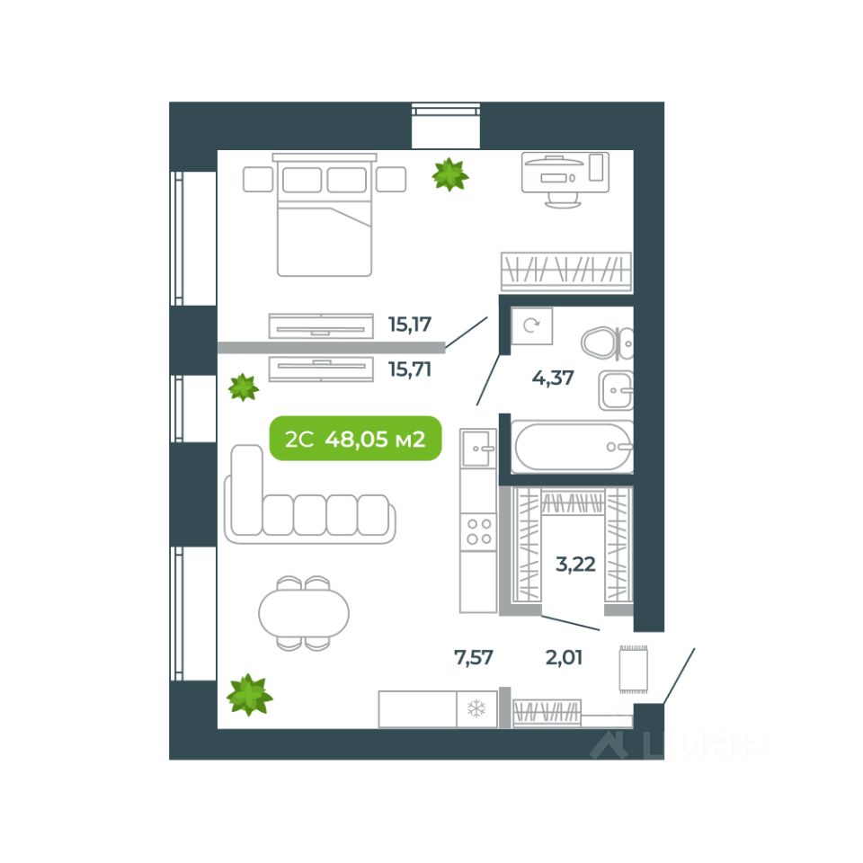 48 м² · Этаж 4 из 4