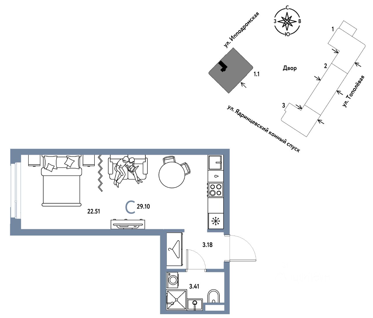 29 м² · Этаж 6 из 9