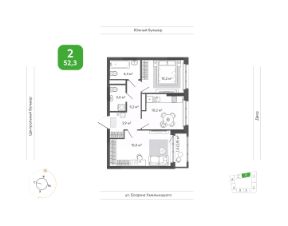 Продаётся 2-комнатная квартира в строящемся доме (Дом 13), срок сдачи: III-кв. 2027, общей площадью 53.4 кв.м., на 2 этаже. Новый жилой комплекс ''Акация на Игарской'' от застройщика ООО СЗ Аквамарин (Акация) расположен в Калининском районе г. Новосибирск в границах улиц Игарская и Фадеева.