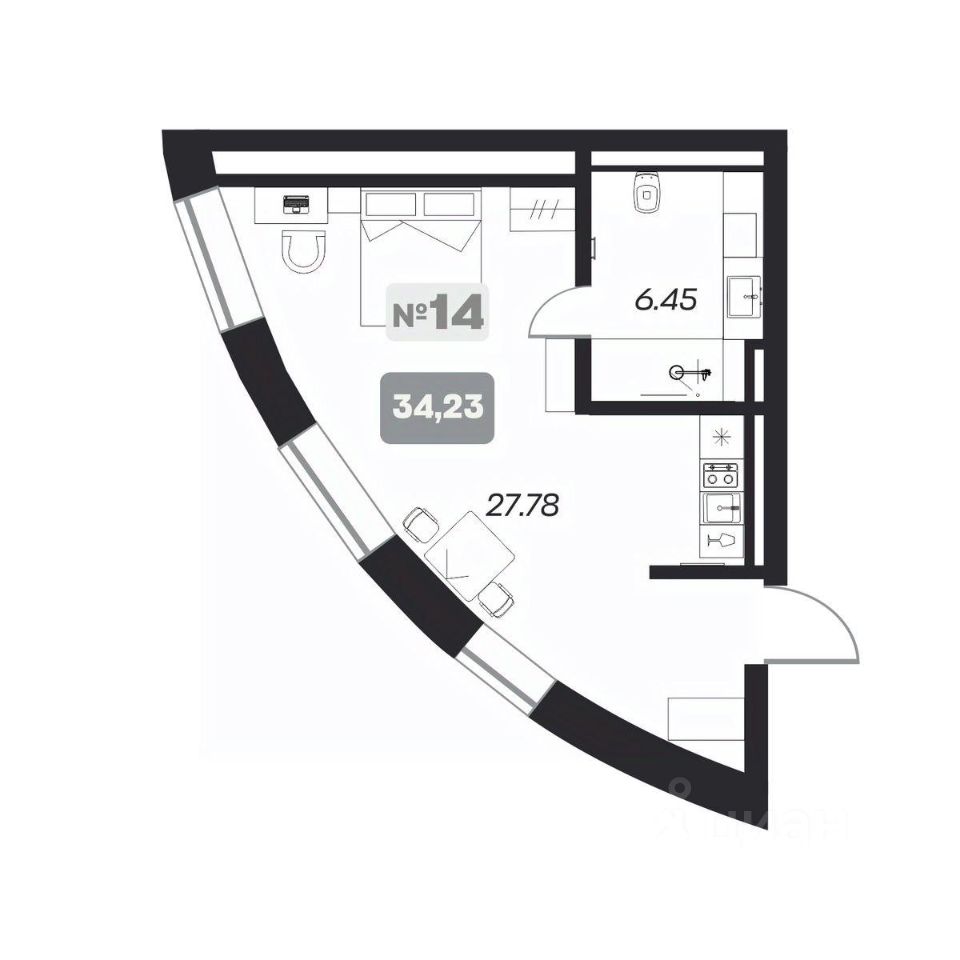 34 м² · Этаж 9 из 22
