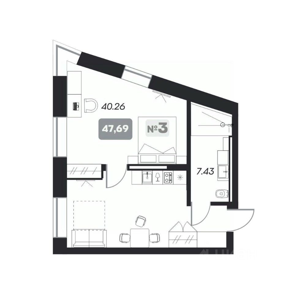 47 м² · Этаж 4 из 22