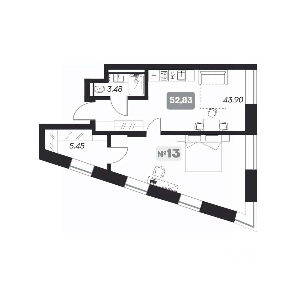 49 м² · Этаж 13 из 22