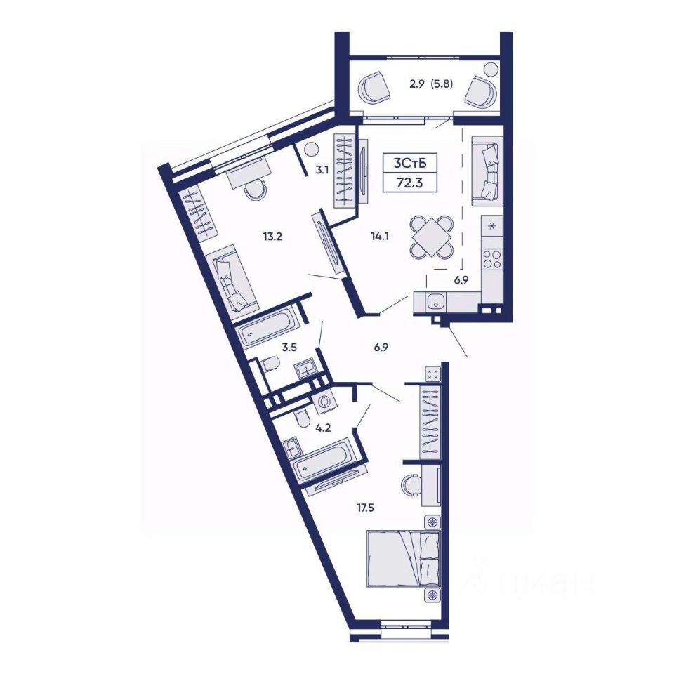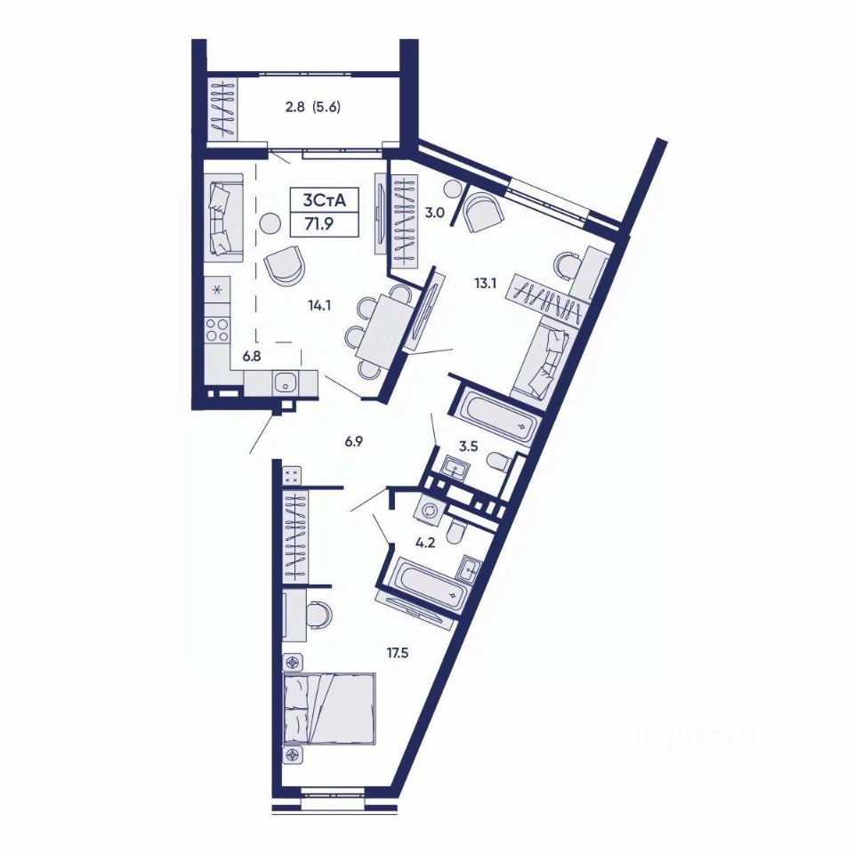 71 м² · Этаж 3 из 14