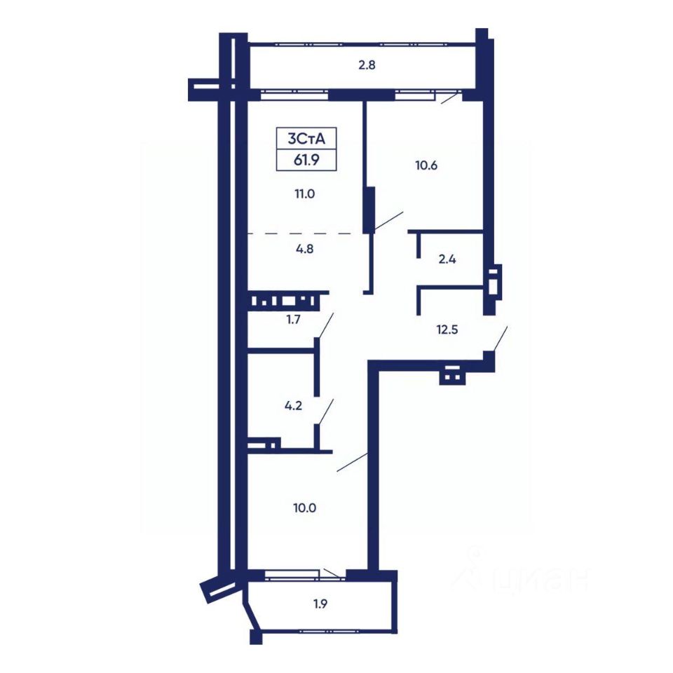 61 м² · Этаж 13 из 14