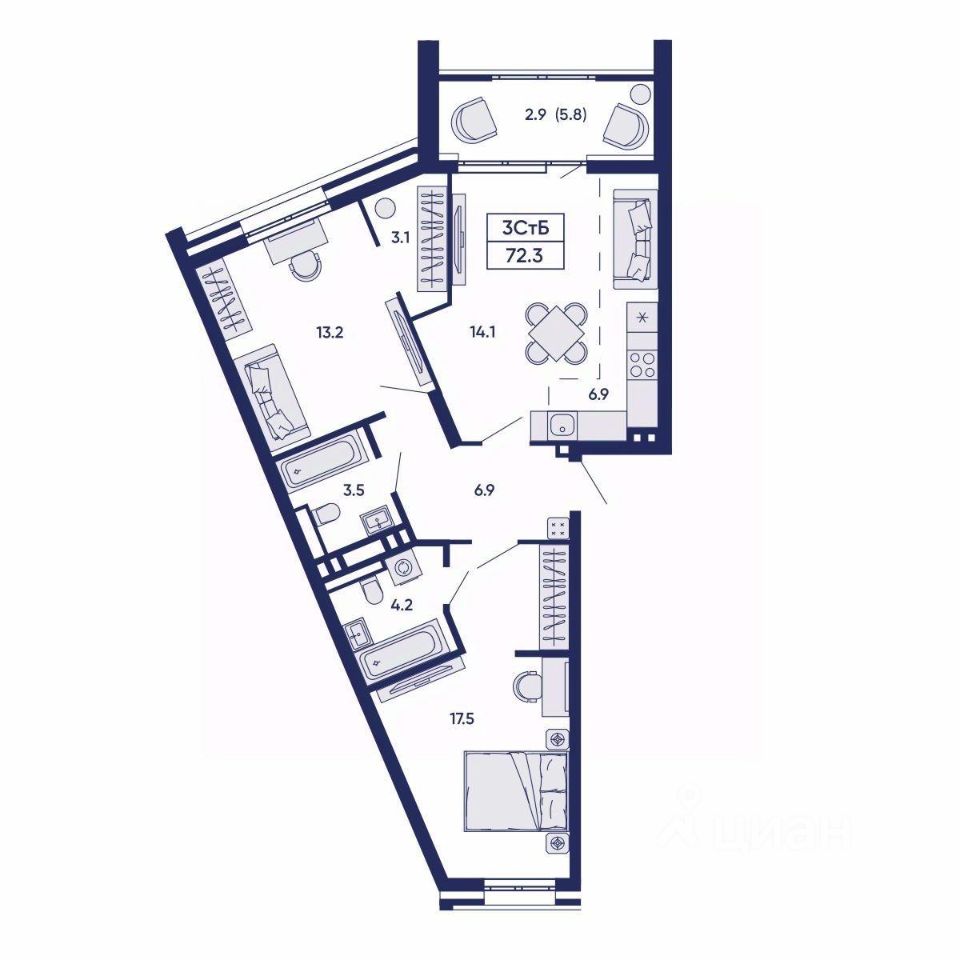 73 м² · Этаж 14 из 14