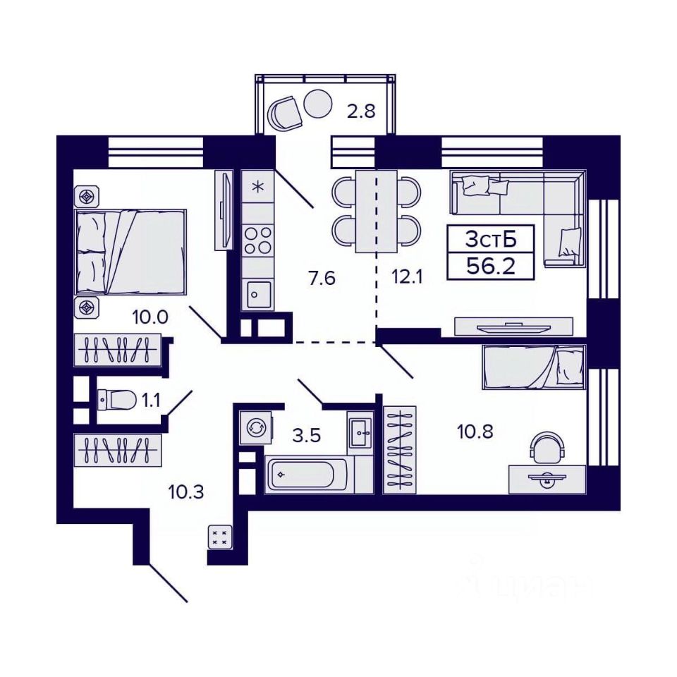 Продаётся 3-комнатная квартира в строящемся доме (Дом 1), срок сдачи: III-кв. 2026, общей площадью 56.2 кв.м., на 13 этаже. Новый жилой комплекс CITATUM (Цитатум) от компании VIRA расположен в Октябрьском районе Новосибирска на ул. Грибоедова.