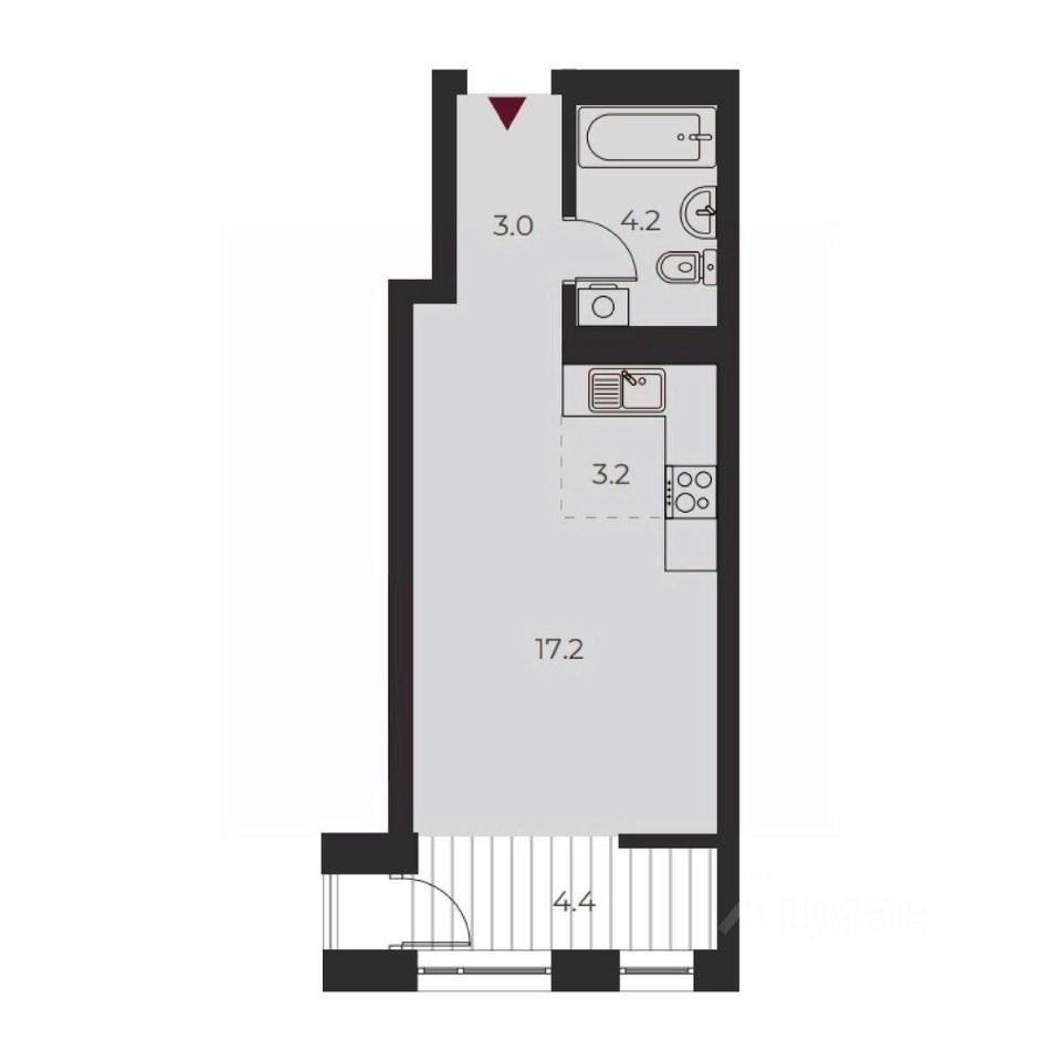 Продаётся студия в строящемся доме (Дом 5), срок сдачи: II-кв. 2026, общей площадью 28.9 кв.м., на 10 этаже. Жилой комплекс ''Расцветай на Красном'' — проект класса ''комфот+'' от группы компаний ''Расцветай'' в шаговой доступности от Площади Калинина в Заельцовском районе Новосибирска. РАСПОЛОЖЕНИЕ Под строительство комплекса отведен участок в 9 Га в тихом центре между улицами Красный проспект, Перевозчиков и Дачная. В 5 минутах ходьбы от ЖК расположена станция ''Заельцовская'', а также остановки общественного транспорта с маршрутами в разные точки города. Проходящая рядом улица Дуси Ковальчук позволяет выехать на такие магистрали, как Ипподромская, Богдана Хмельницкого и Нарымская, и быстро добраться до Главного вокзала и через Димитровский мост на левый берег. ИНФРАСТРУКТУРА Согласно проекту внутри комплекса планируется создать собственную развитую инфраструктуру. Предусмотрено строительство школы и детского сада, а первые этажи домов займут коммерческие площади под магазины, офисы, спортивные центры, салоны красоты и аптеки. В шаговой доступности от ЖК ''Расцветай на Красном'' доступно 3 общеобразовательных школы, лицей и гимназия, пять детских садов и частная школа ''Аврора''. В районе улицы Богдана Хмельницкого сосредоточено три ВУЗа, ледовый дворец ''Сибирь'', бассейн ''Нептун'' и ПкиО ''Сосновый бор''. Супермаркеты, аптеки, кафе и магазины расположены в радиусе 10-минутной доступности на Площади Калинина. В 15 минутах ходьбы работает ТРК ''Ройял Парк'' с фудкортом, развлекательным детским центром и кинотеатром. Локация комплекса привлекает горожан шаговой доступностью до Новосибирского зоопарка и дендрария, а также Тимирязевского сквера, где можно тихо и спокойно отдохнуть от городской суеты. ДВОР Территория ЖК запроектирована как закрытый для посторонних, тихий двор без машин. На внутреннем периметре размещаются развивающие детские игровые зоны и спортивные площадки на бесшовном резиновом покрытии, а также места для отдыха взрослых. Озеленение проводится в виде посадки кустарников, газонов и цветников. Для владельцев личного авто предусмотрен подземный паркинг на 181 место. Спуститься на парковку можно на лифте, а управление шлагбаумом и воротами проводится по брелокам с датчиками доступа. ДОМА Первая очередь ''Расцветай на Красном'' включает три монолитно-каркасных дома высотой 12,18 и 25 этажей. Стены выполняются из морозоустойчивого кирпича. Комфортный микроклимат зимой и летом сохраняют кашированные окна со стеклопакетом Lifeglass и индивидуальные тепловые пункты, оборудованные в каждом доме. Для хранения сезонных вещей на подземном этаже запроектированы хозяйственные кладовые. КВАРТИРЫ В домах первой очереди ЖК застройщик предусмотрел широкий ассортимент планировок: от компактных 1-комнатных студий площадью 24 м² до 4-комнатных студий в 84 м². В крупногабаритных квартирах запроектировано по 2 санузла, 2 лоджии и французские балконы.