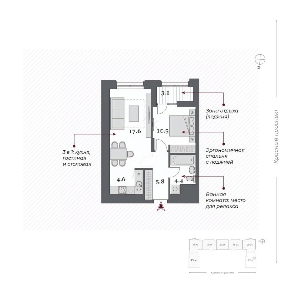 42 м² · Этаж 17 из 23