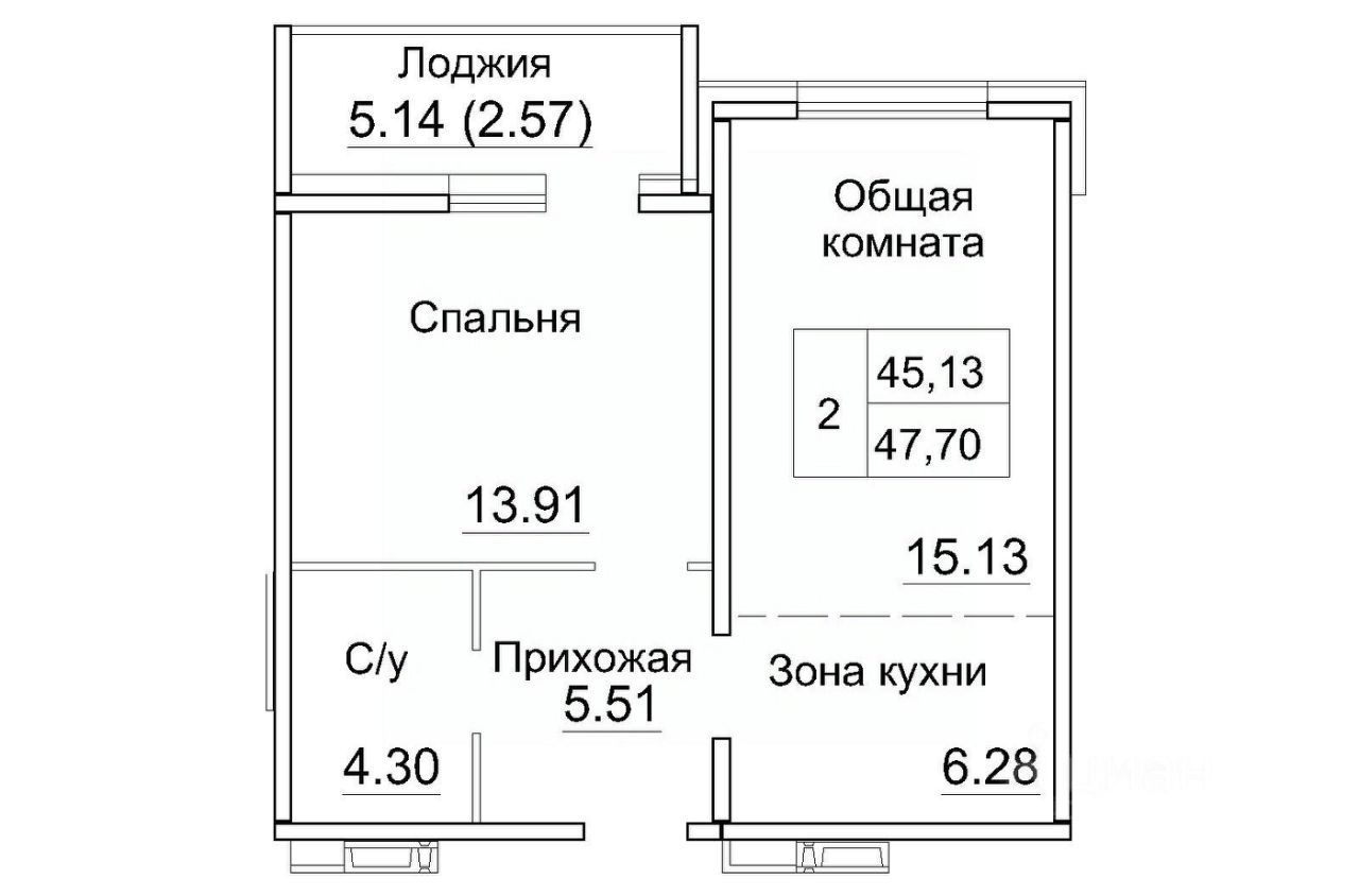 43 м² · Этаж 2 из 6