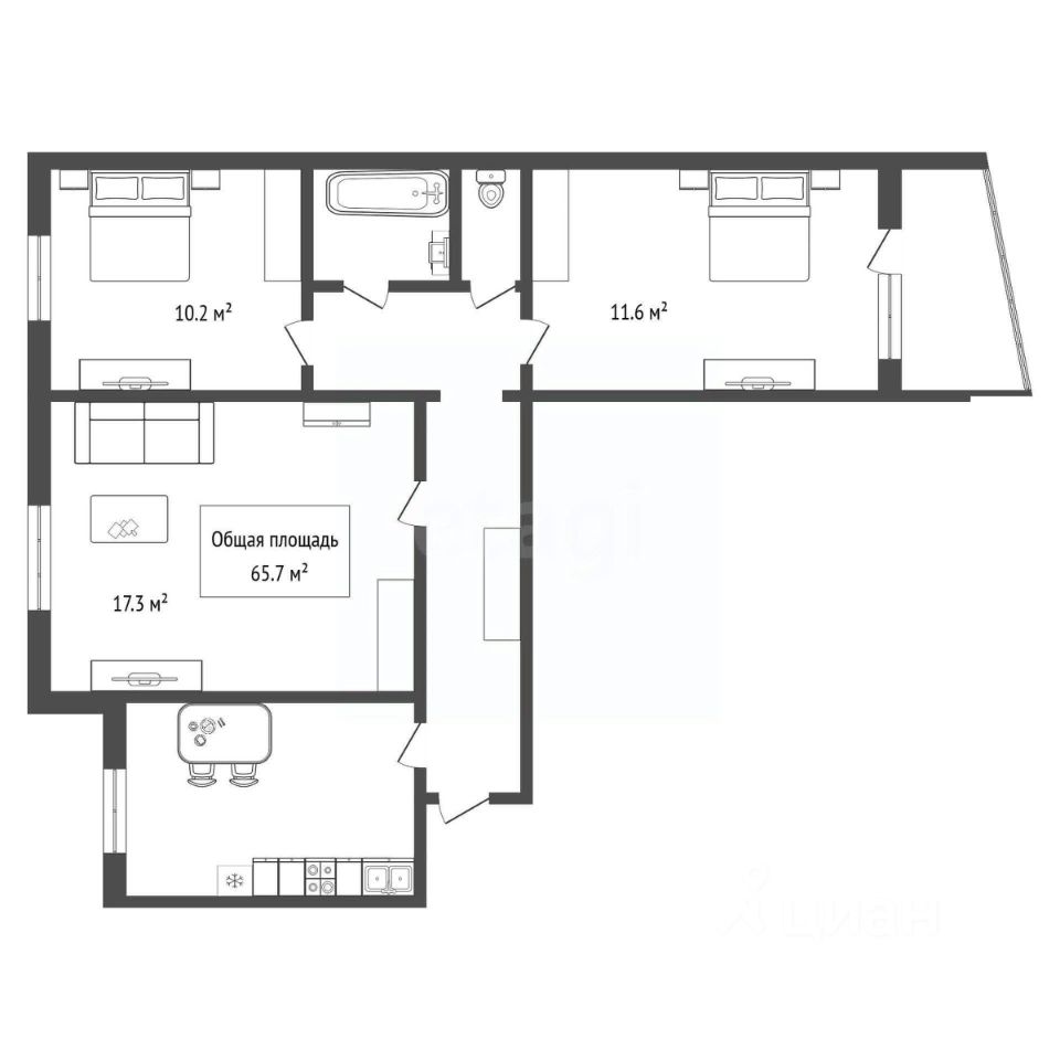 65 м² · Этаж 6 из 9