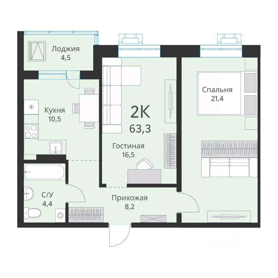 63 м² · Этаж 2 из 15