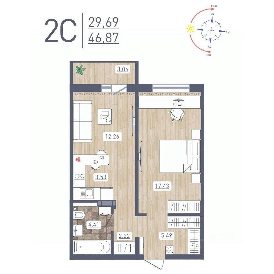 46 м² · Этаж 12 из 17