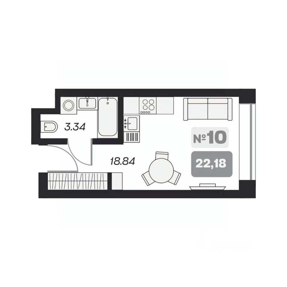 22 м² · Этаж 13 из 15